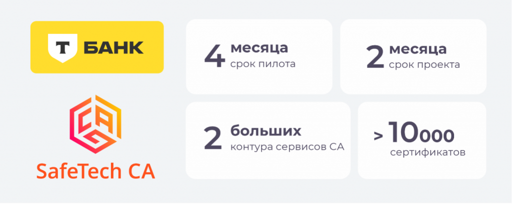 Пилотный проект в организации продлился 4 месяца. В ходе тестирования было проверено множество различных сценариев использования СА во внутренней инфраструктуре Т-Банка, возможности продуктового REST API в части интеграции во внутренние бизнес-процессы, и даже возможности команды разработки вендора на предмет доработок тех или иных дополнительных функций. Было выпущено несколько тысяч технологических сертификатов для различных типов устройств и различных операционных систем — как Windows, так и Linux.